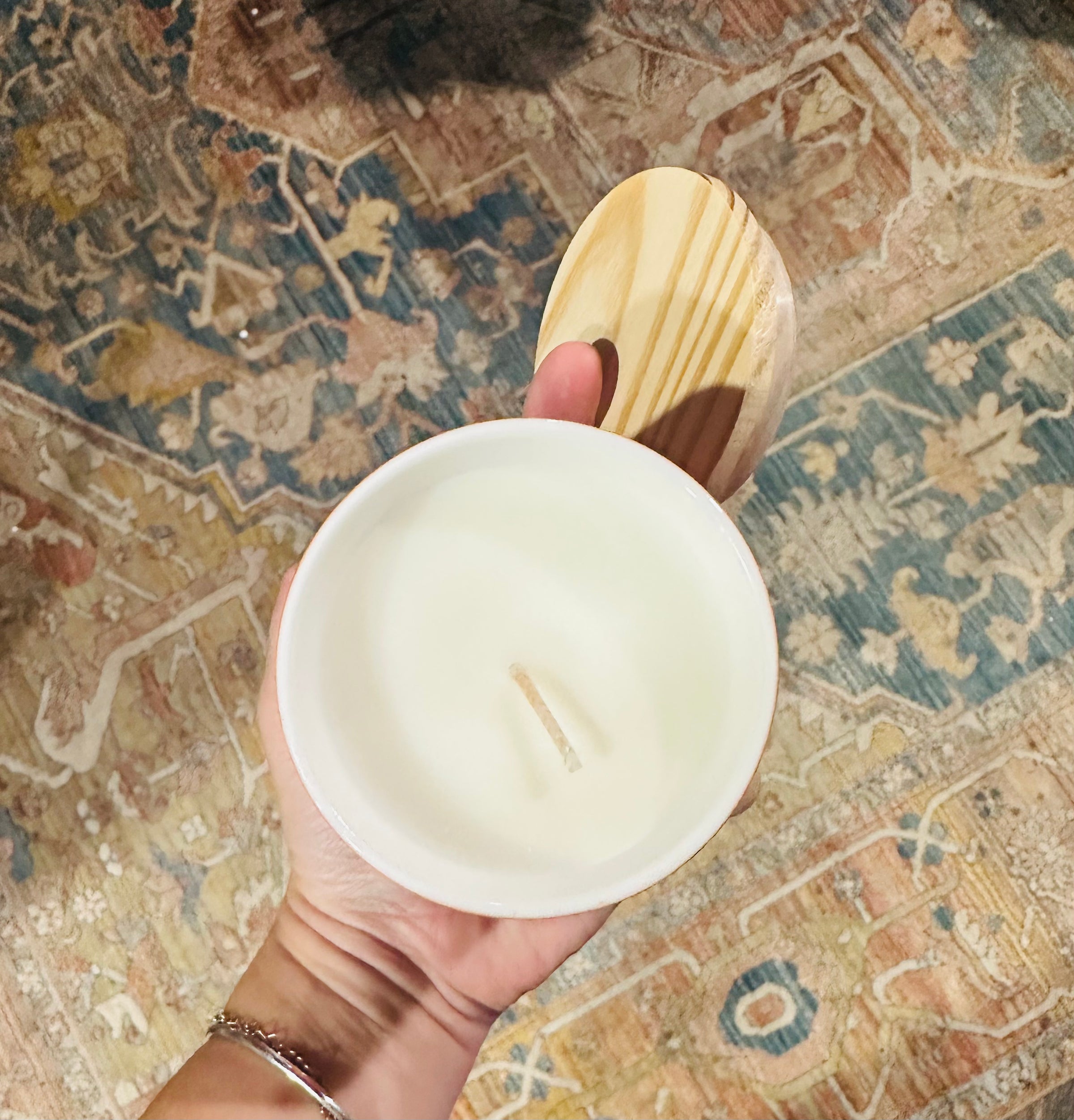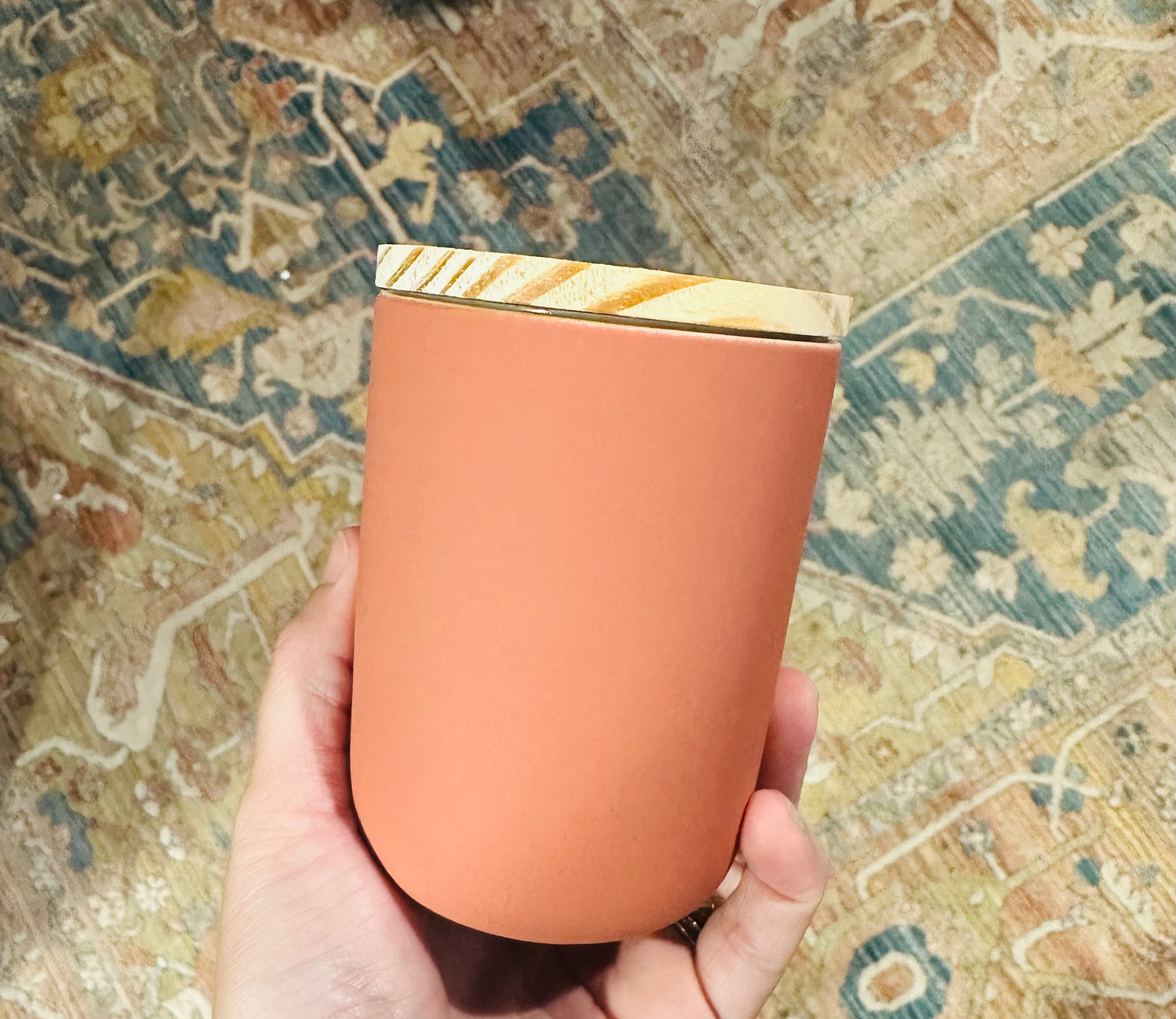 Our candles are 100% all natural, American grown soy wax +coconut wax (yay for renewable resources!), with a lead free, cotton wick to ensure non toxic burning. This candle is also phthalate free, vegan and cruelty free.