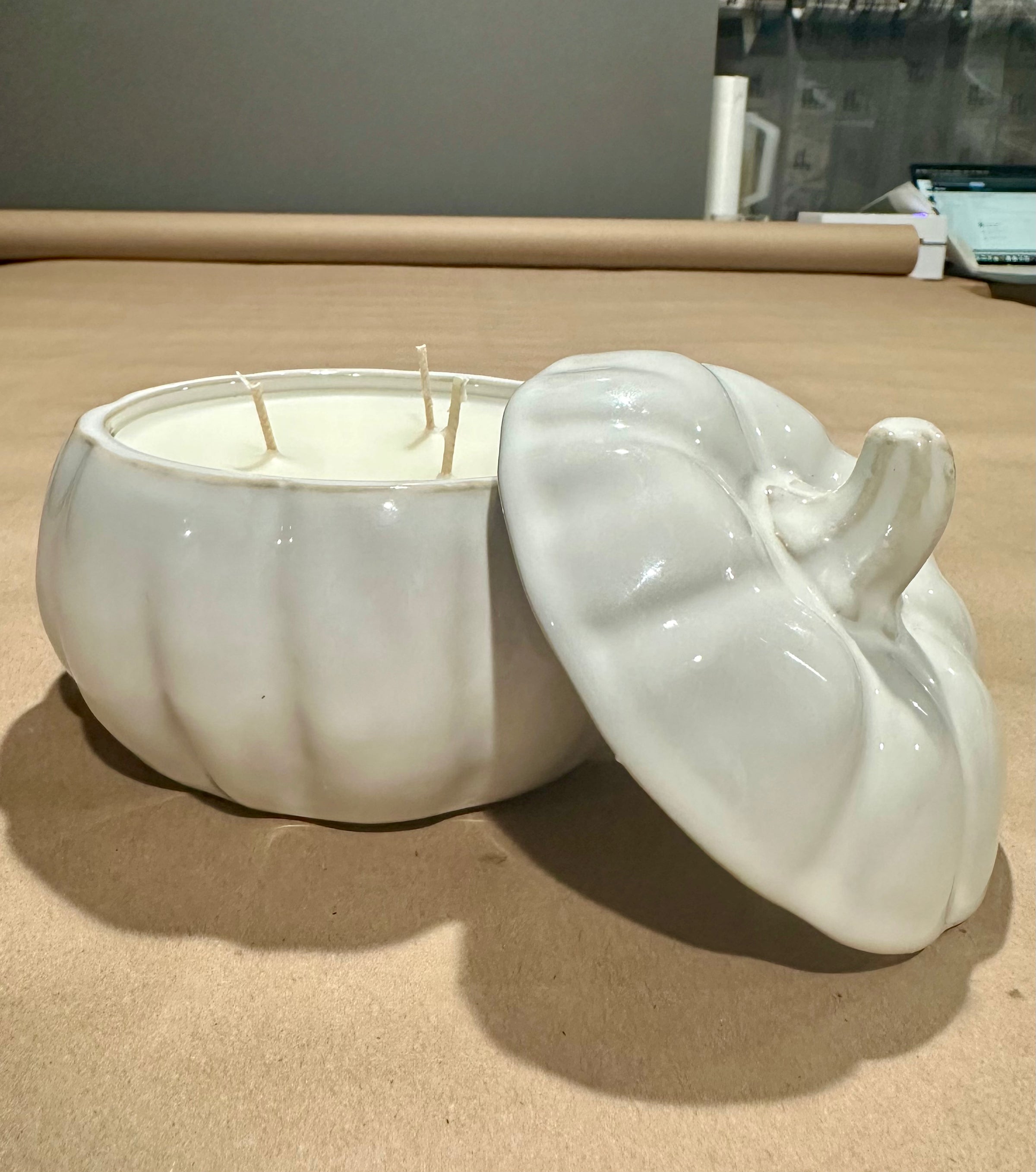 this pumpkin is filled with my new favorite fall scent - "autumn"! it's got top notes of crisp apples, red berries, and sweet orange with mid notes of golden mulled cider with clove spice and oak that help warm it up!